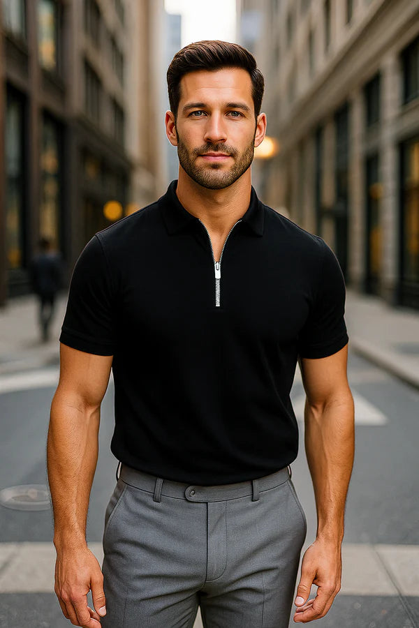 De zwarte polo met rits combineert klassieke en eigentijdse elementen voor een verfijnde én relaxte look. Ideaal als je verzorgd voor de dag wilt komen zonder in te leveren op praktisch gebruik.