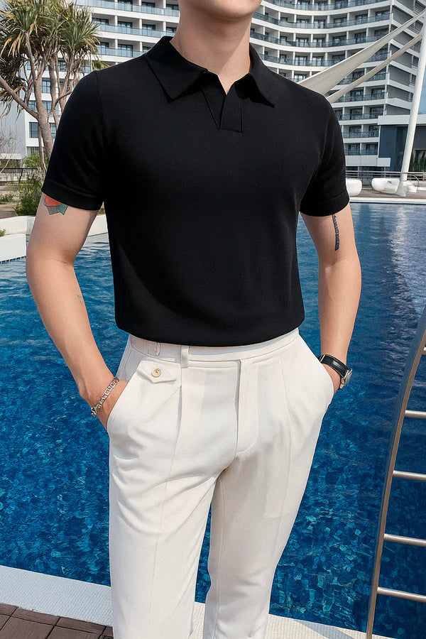 Gemaakt van een ademend breisel met slim-fit pasvorm, zodat je je op warme dagen comfortabel voelt — zonder in te leveren op stijl.